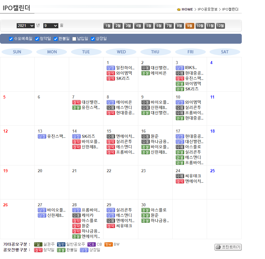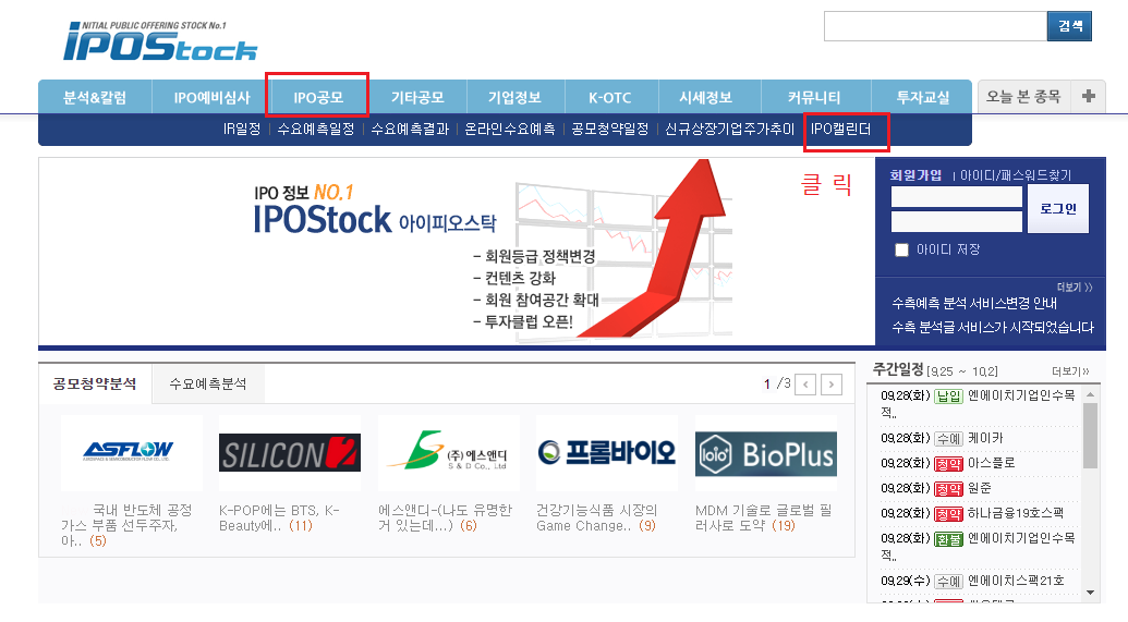 IPO공모 - IPO캘린더 메뉴 클릭합니다.