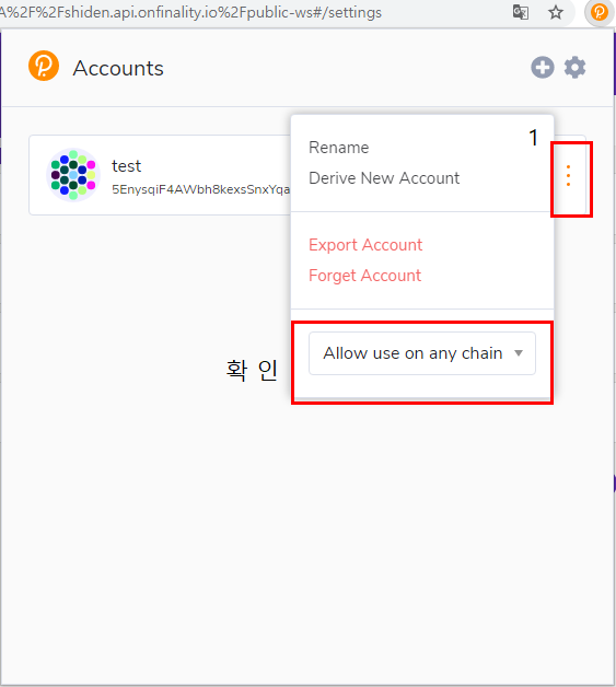 1) 브라우저에서 폴카닷 익스텐션 클릭