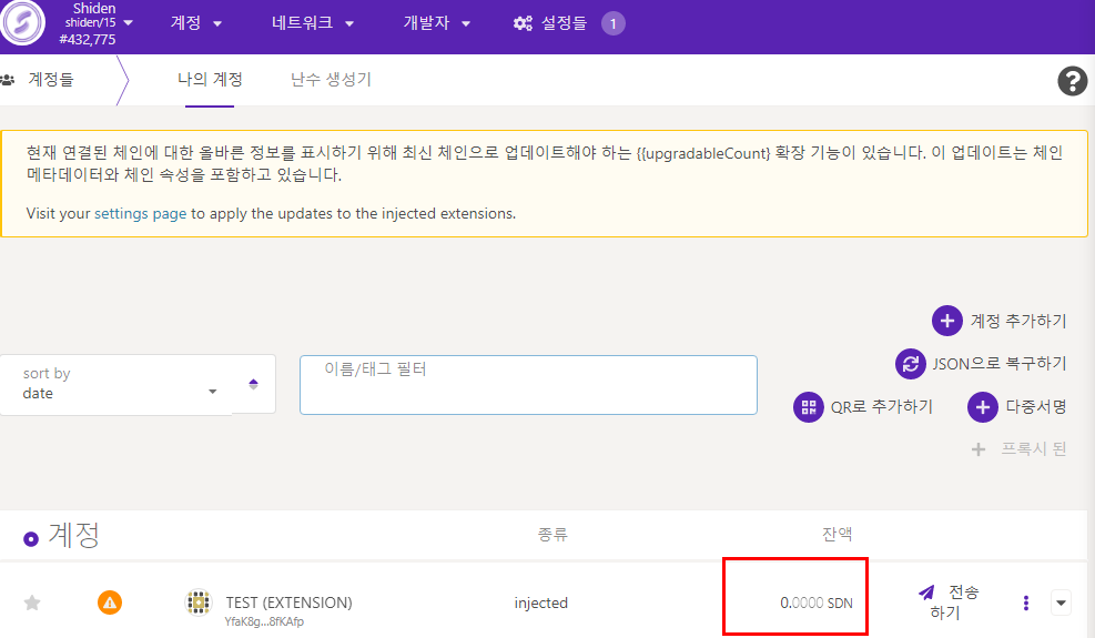 => 예시) Shiden 체인 선택